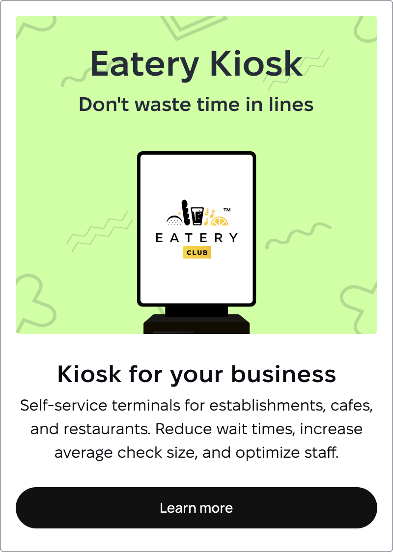The kiosk software matters as much as the hardware. Modern white-label solutions like Eatery Club offer intuitive interfaces that guests can navigate in seconds, multilingual support for international clientele, and seamless integration with existing POS systems like Syrve. The platform’s loyalty program integration means customers can log in via phone number or guest card to view available bonuses and track rewards earned with each order.